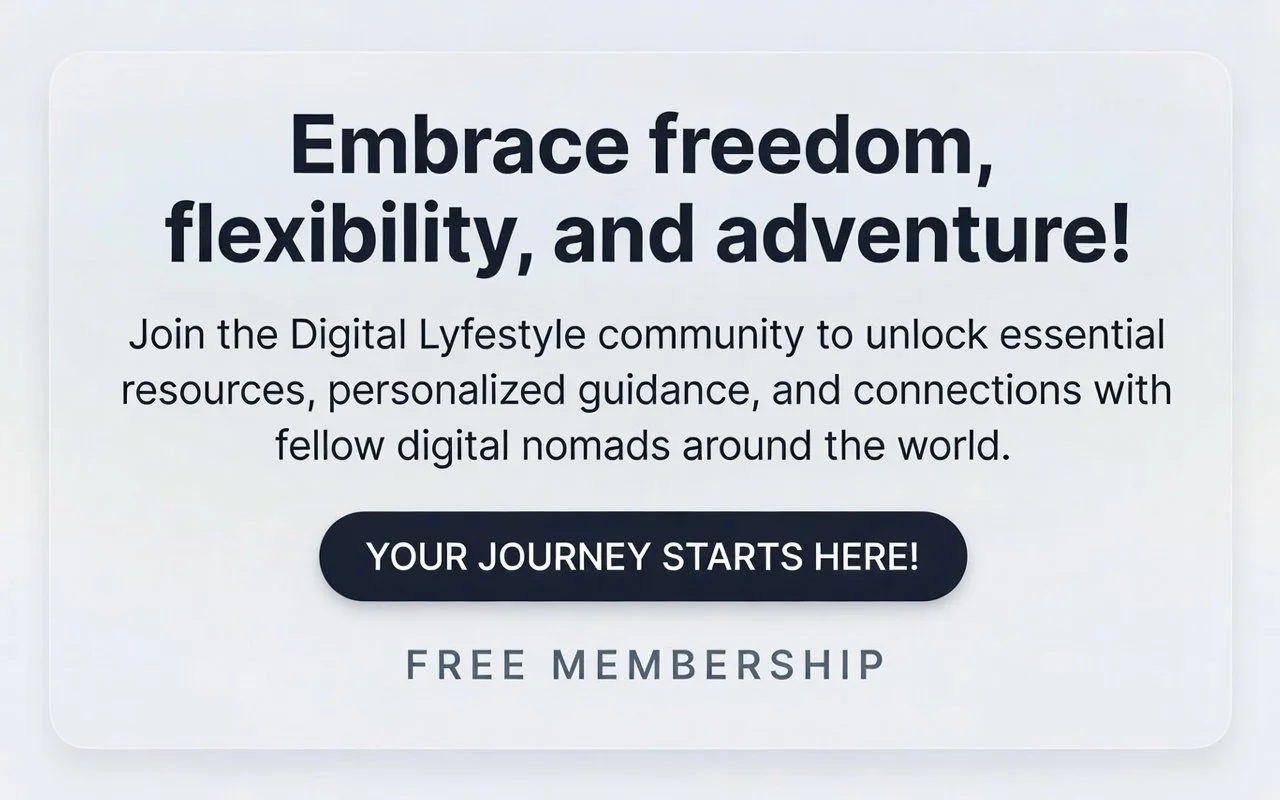 Join the Digital Lyfestyle community to unlock essential resources, personalized guidance, and connections with fellow digital nomads around the world.